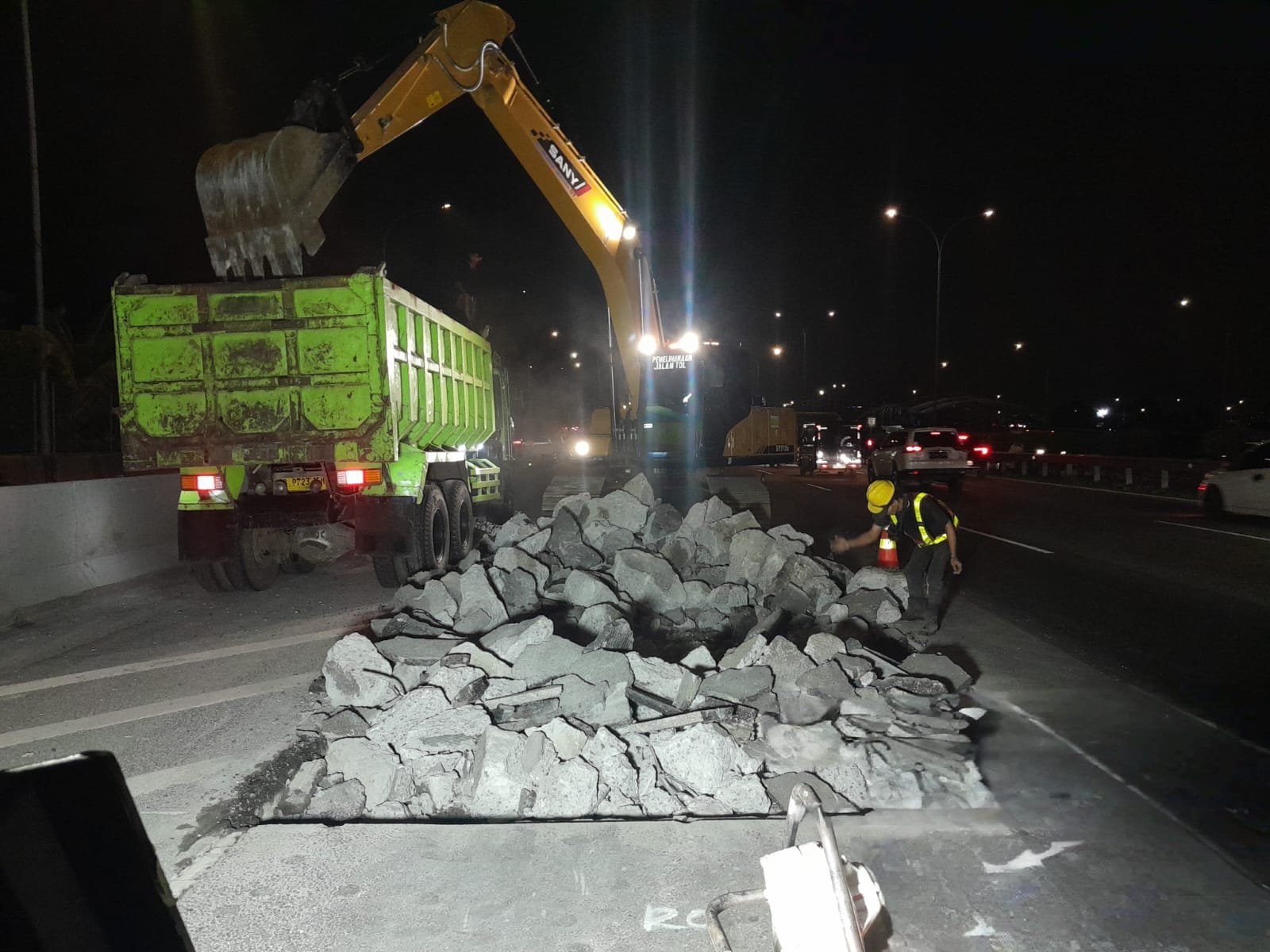 Lajur yang menjadi objek pekerjaan untuk sementara tidak dapat dilintasi selama pekerjaan berlangsung, namun lajur lainnya dapat digunakan sebagai lajur lalu lintas.
