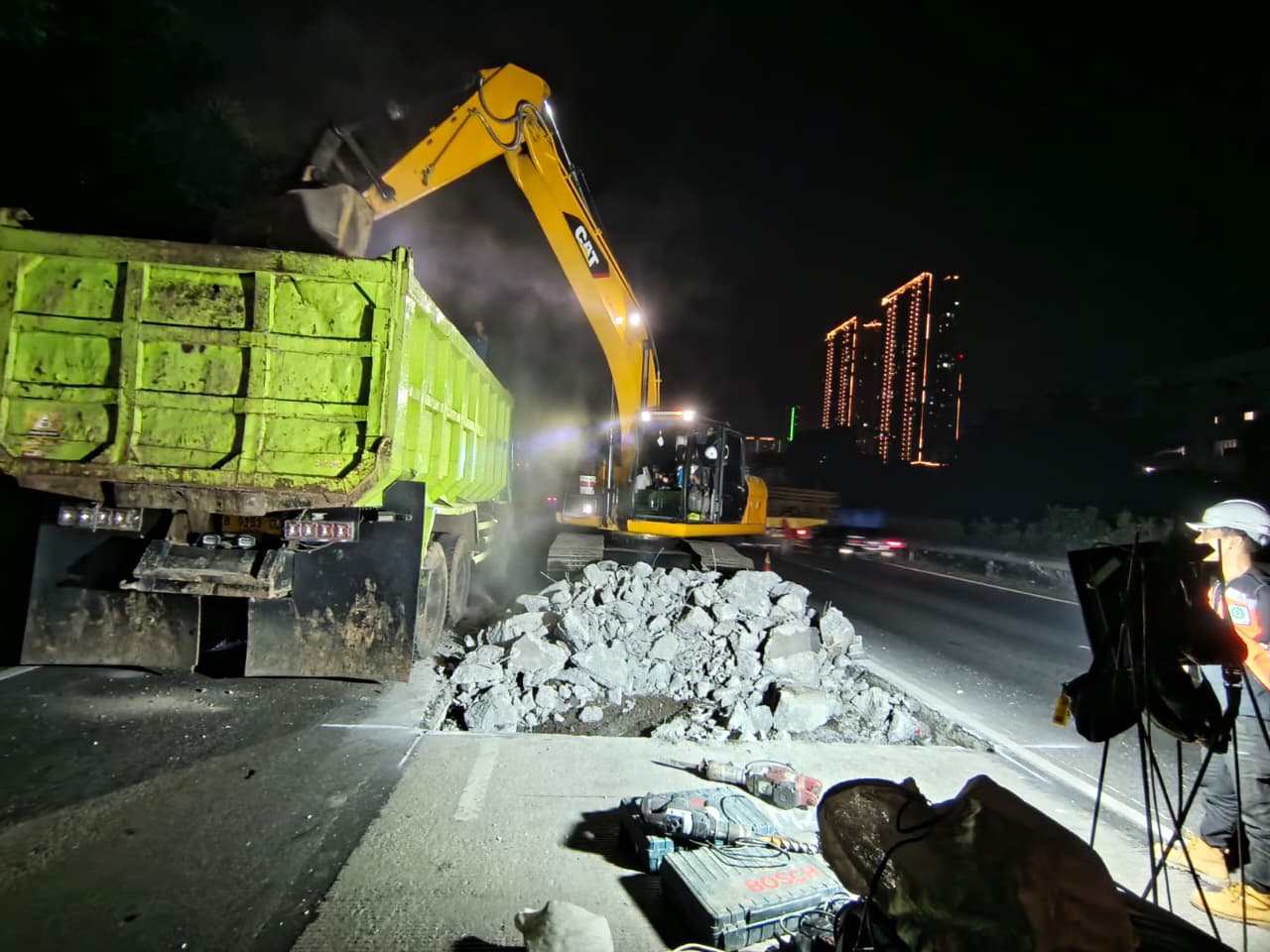 Lajur 2, KM 25+595 s.d KM 25+590, dilaksanakan mulai hari Senin, 08 Desember 2025 pukul 18.00 WIB s.d Rabu, 10 Desember 2025 pukul 05.00 WIB;