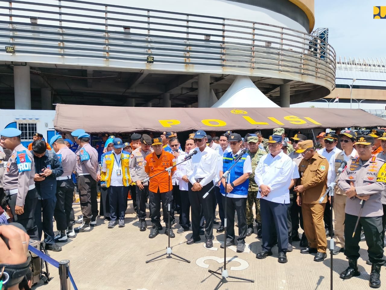 Kesiapan jalan nasional disampaikan Menteri PU Dody Hanggodo saat kunjungan kerja bersama Menteri Koordinator Bidang Pembangunan Manusia dan Kebudayaan (Menko PMK) Pratikno, Kapolri Jenderal Pol. Listyo Sigit Prabowo, dan Menteri Kesehatan Budi Gunadi Sadikin di kawasan Pelabuhan Merak, Senin (22/12/2025).