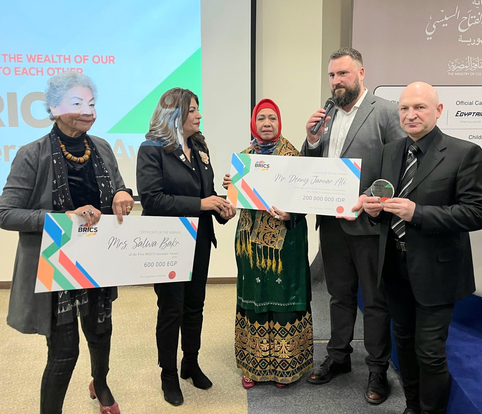 Dihadiri Direktur Eksekutif Penghargaan BRICS, Aleksander Okstovich, didampingi Direktur Eksekutif BRICS Literature Network, Vadim Terekhin, dan Koordinator BRICS Mesir, Douha Mostafa.