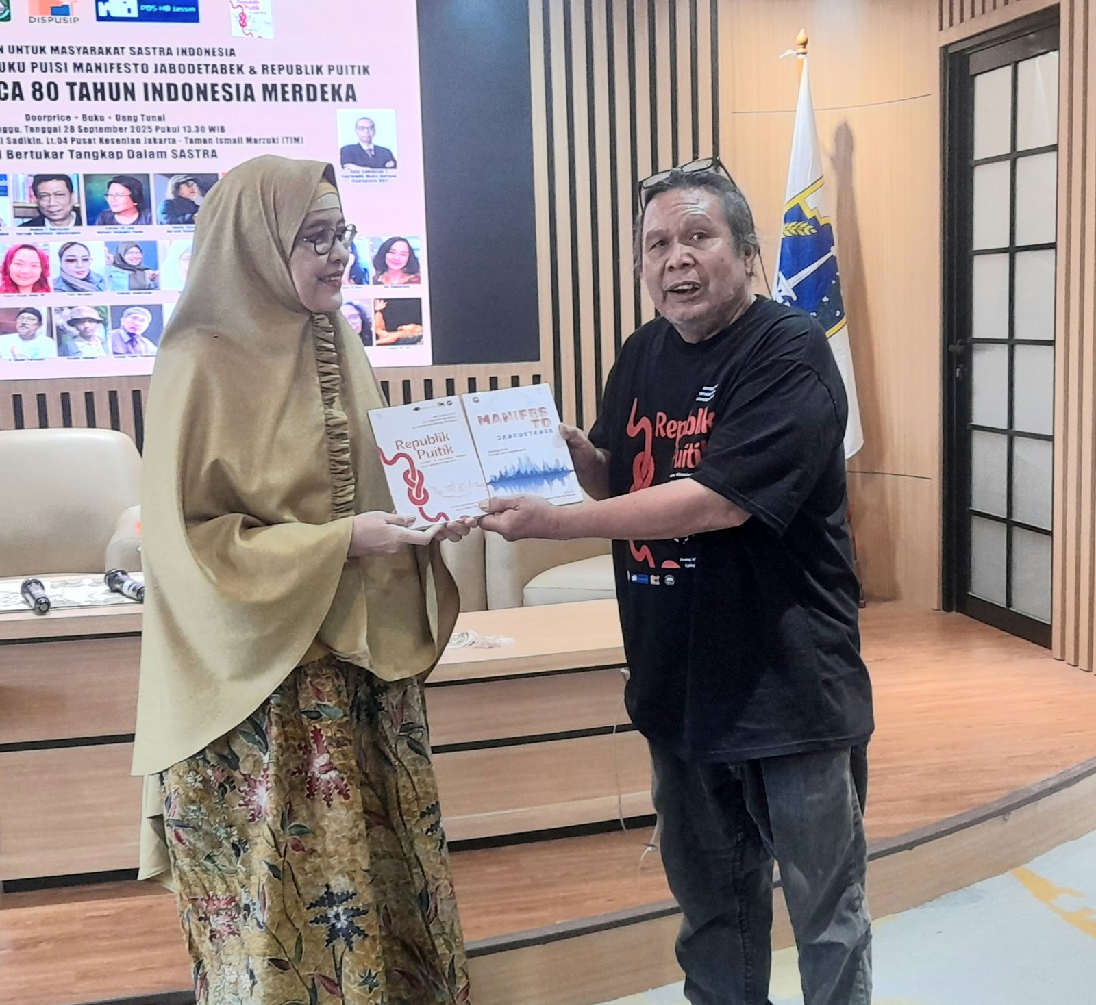 Ketika menyampaikan prolog berjudul “Republik Puitik : Soal Menjaga ‘Kedaulatan’ Estetika” dalam peluncuran (launching) dua buku antologi puisi bersama REPUBLIK PUITIK dan MANIFESTO JABODETABEK pada acara sastra bersama Taman Inspirasi Sastra Indonesia (TISI) yang bertemakan ” Penyair Membaca 80 Tahun Indonesia Merdeka” di Aula Pusat Dokumentasi Sastra (PDS) HB.Jassin, Lantai 4 Gedung Panjang Ali Sadikin, Pusat Kesenian Jakarta (PKJ) di Taman Ismail Marzuki (TIM), Minggu siang (28/9/2025).