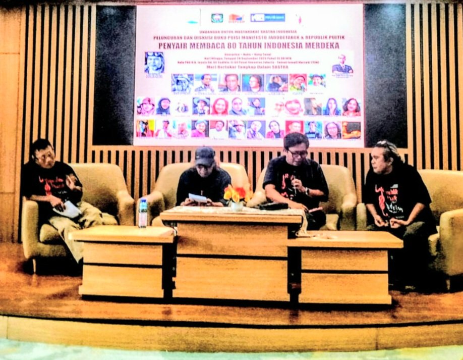 Parade baca puisi dan diskusi sastra pada peluncuran dua buku antologi puisi REPUBLIK PUITIK dan MANIFESTO JABODETABEK dalam acara sastra “Penyair Membaca 80 Tahun Indonesia Merdeka” -yang dibuka langsung oleh Octavianus Masheka, Ketua Taman Inspirasi Sastra Indonesia (TISI)- antara lain dihadiri para penyair dan sastrawan besar Indonesia Sutardji Calzoum Bachri (SCB), Aspar Paturusi dan istri, Halimah Munawir Anwar, Ahmadun Yosi Herfanda, Maman S. Mahayana, Jose Rizal Manua, Taufik Rahzen, Saut Poltak Tambunan, Ewith Bahar, Kurnia Effendi, Linda Djalil, Imam Maarif, Pulo Lasman Simanjuntak, Nanang Ribut Supriyatin, Yahya Andi Saputra, Guntoro Sulung II, Emi Suy, Nunung Noor El Niel, Nurhayati, Nuyang Jaimee, Rissa Churria, Wawan Hamzah Arfan, Humam S Chudori, Wig SM, Heryus Saputro, Adri Darmaji Woko, Mustari Irawan, Budhi Setywan, Alex R Nainggolan, dan masih banyak lagi.