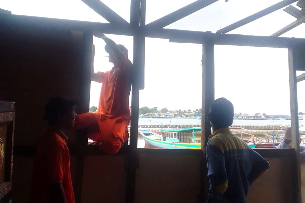 Terjangan angin kencang pada Seni sore (20/1/2025) menyebakan satu rumah milik warga di Pulau Kelapa, Kepulauan Seribu Utara, mengalami kerusakan parah.