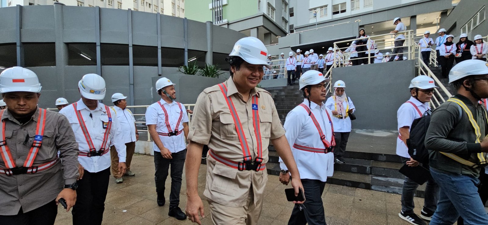 JAKARTA– Menteri Perumahan dan Kawasan Permukiman (PKP) Maruarar Sirait (Ara) didampingi Wakil Menteri Sekretaris Negara (Wamensetneg) Juri Ardiantoro meninjau progres revitalisasi Rumah Susun (Rusun) Wisma Atlet Kemayoran Blok C2 di Jakarta, Senin (13/1/2025).